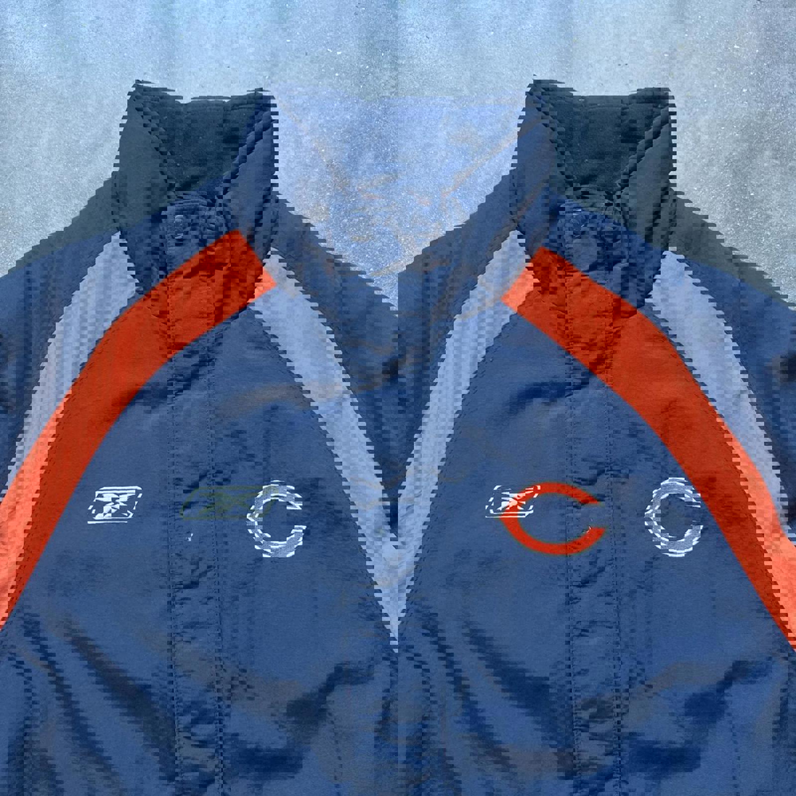 bears NFL jacket, winter sportswear, Reebok coat, team logo, athletic outerwear, quilted windbreaker, NFL apparel, sports memorabilia, winter layer, Chicago fan style